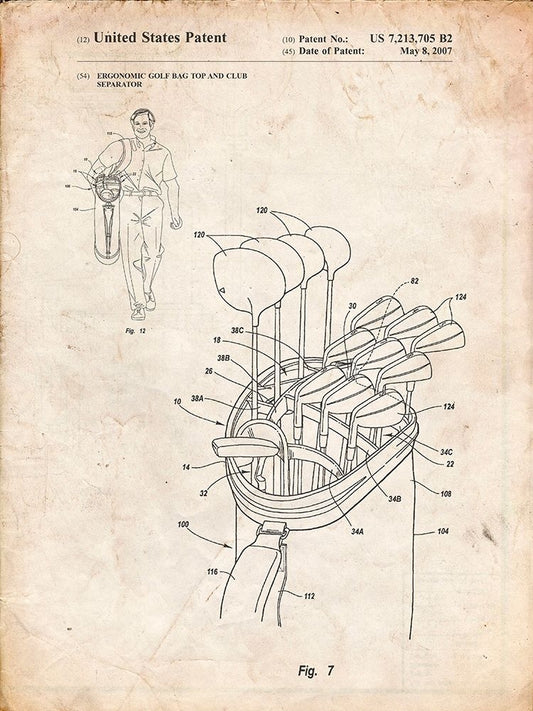 PP234-Vintage Parchment Golf Bag Patent Poster White Modern Wood Framed Art Print with Double Matting by Borders, Cole