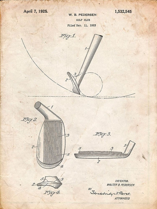 PP9-Vintage Parchment Golf Driver 1925 Patent Poster White Modern Wood Framed Art Print with Double Matting by Borders, Cole
