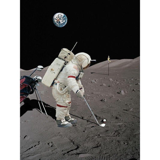 Lunar Golf - NASA White Modern Wood Framed Art Print by Astrolabs