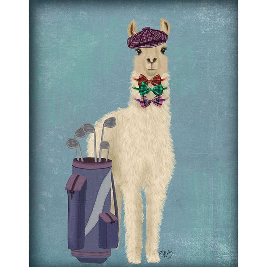 Llama Golfing Book Print Gold Ornate Wood Framed Art Print with Double Matting by Fab Funky