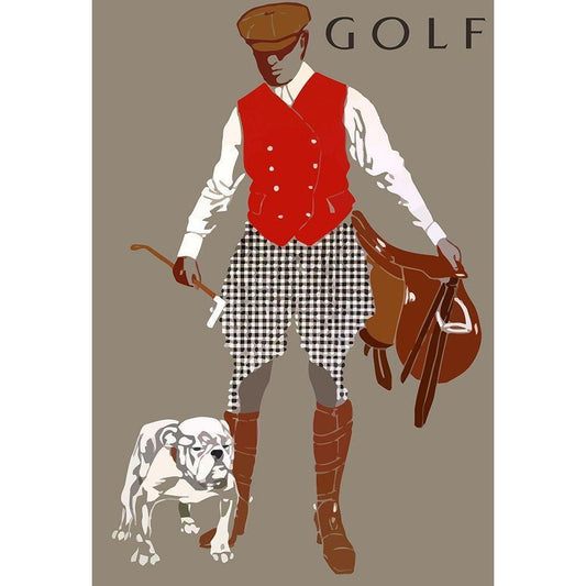 bulldog_golf Gold Ornate Wood Framed Art Print with Double Matting by Vintage Apple Collection