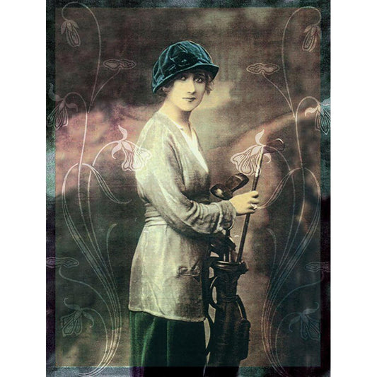 Pretty Golf Girl Gold Ornate Wood Framed Art Print with Double Matting by Vintage Apple Collection