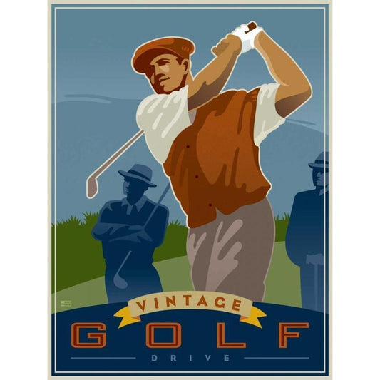 Vintage Golf - Drive Gold Ornate Wood Framed Art Print with Double Matting by Huynh, Si