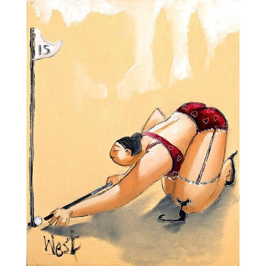 Golf Putting Black Modern Wood Framed Art Print by West, Ronald