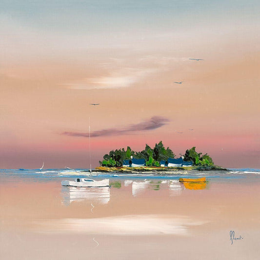 Soleil couchant sur le golfe 1 Black Modern Wood Framed Art Print by Flanet, Frederic