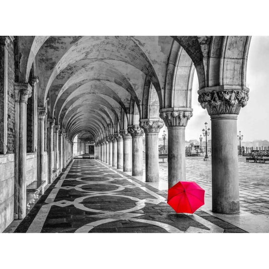 Bunch of Roses and an umbrella on a bench, Venice, Italy Black Modern Wood Framed Art Print with Double Matting by Frank, Assaf