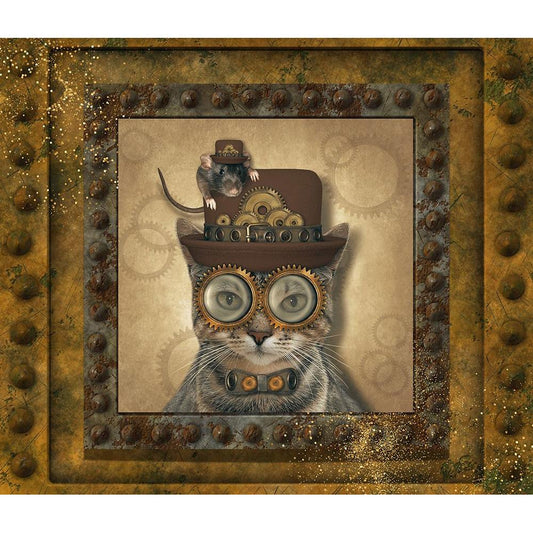 Steampunk Cat and Mouse White Modern Wood Framed Art Print by Mitchell, Tina