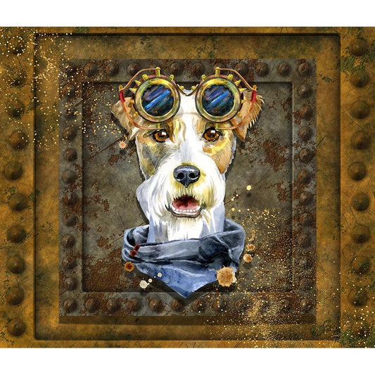 Steampunk Airedale Terrier White Modern Wood Framed Art Print by Mitchell, Tina