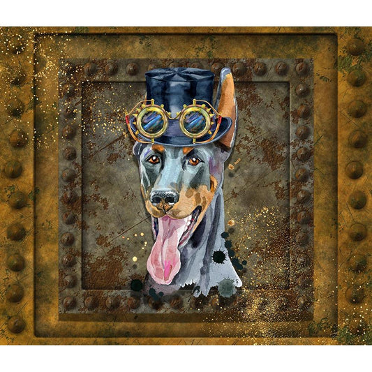 Steampunk Great Dane White Modern Wood Framed Art Print by Mitchell, Tina