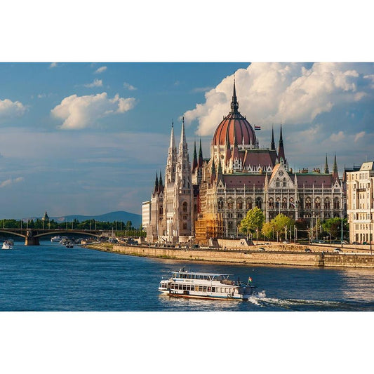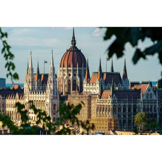 Hungarys Parliament-built between 1884-1902 is the countrys largest building-It has 691 rooms and s Gold Ornate Wood Framed Art Print with Double Matting by Haseltine, Tom
