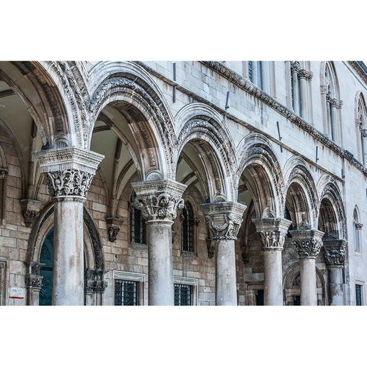 Dubrovnik-Croatia-Ornate columns at Sponza Palace Gold Ornate Wood Framed Art Print with Double Matting by Haseltine, Tom