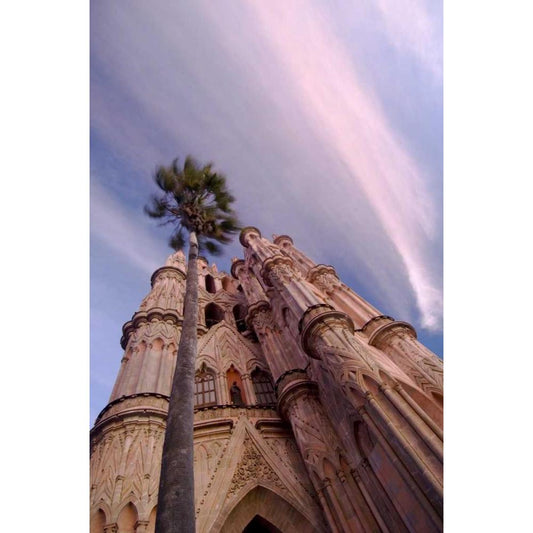 Mexico, The Parroquia Church and Palm Tree Gold Ornate Wood Framed Art Print with Double Matting by Rotenberg, Nancy