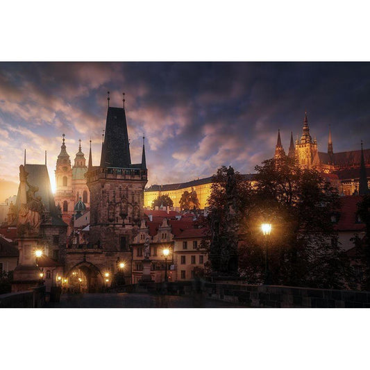 Prague Sun. Black Modern Wood Framed Art Print by Pablo De, Juan