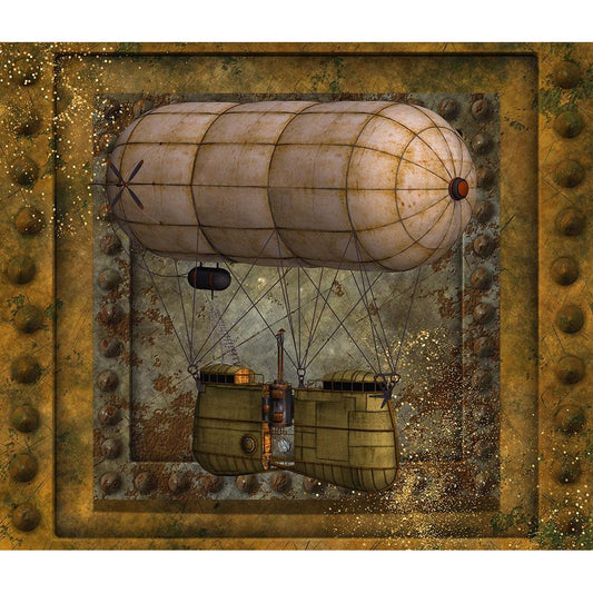 Steampunk Zeppelin Balloon Black Modern Wood Framed Art Print by Mitchell, Tina