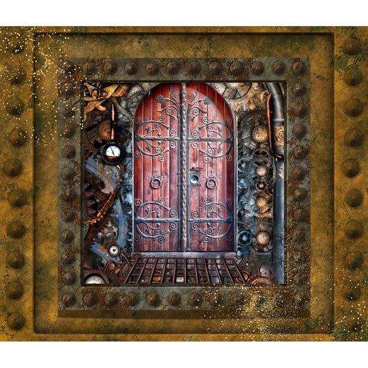 Steampunk Door Black Modern Wood Framed Art Print by Mitchell, Tina