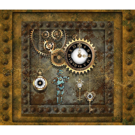 Steampunk Robot Clockworks Black Modern Wood Framed Art Print by Mitchell, Tina