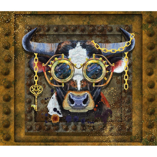 Steampunk Cow Black Modern Wood Framed Art Print by Mitchell, Tina