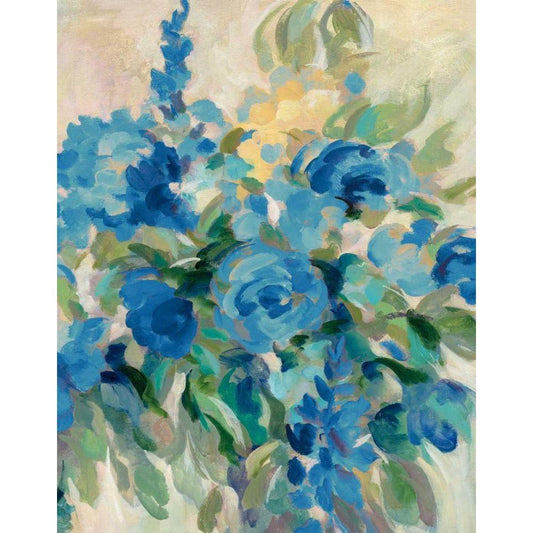 Field Floral II Blue Gold Ornate Wood Framed Art Print with Double Matting by Vassileva, Silvia