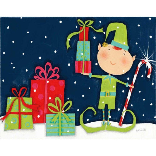 Bright Christmas Candy Cane Elf Blue Gold Ornate Wood Framed Art Print with Double Matting by Tavoletti, Anne