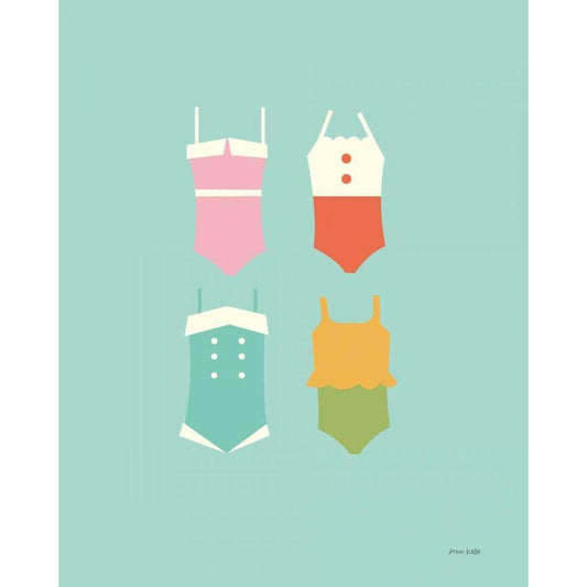 Summer Bathing Suits Blue Gold Ornate Wood Framed Art Print with Double Matting by Kelle, Ann