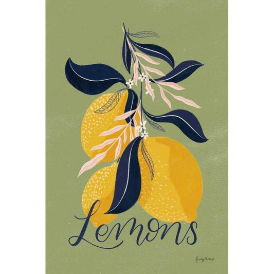 Lemons I Green Gold Ornate Wood Framed Art Print with Double Matting by Thorns, Becky