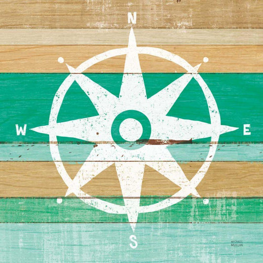 Beachscape IV Compass Green Gold Ornate Wood Framed Art Print with Double Matting by Mullan, Michael