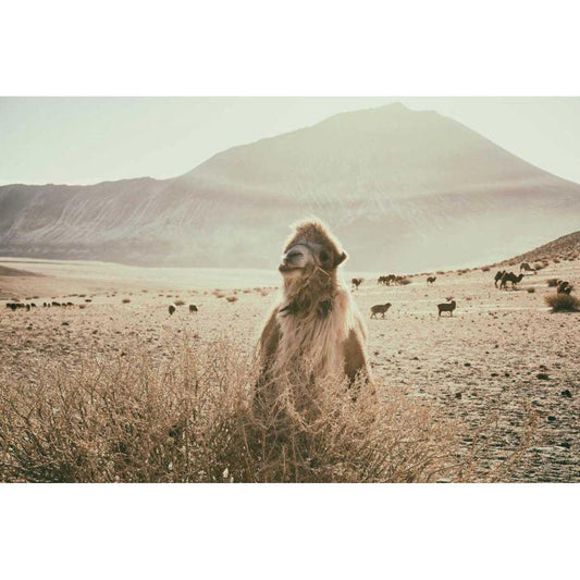 Desert Camel Gold Ornate Wood Framed Art Print with Double Matting by Aledanda