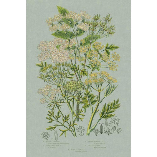 Flowering Plants III Green Linen Gold Ornate Wood Framed Art Print with Double Matting by Wild Apple Portfolio