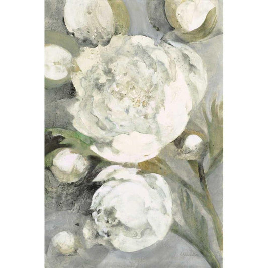 Favorite White Peonies Gold Ornate Wood Framed Art Print with Double Matting by Hristova, Albena