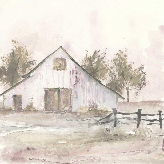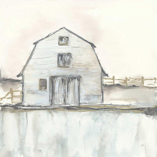 White Barn II Gold Ornate Wood Framed Art Print with Double Matting by Paschke, Chris
