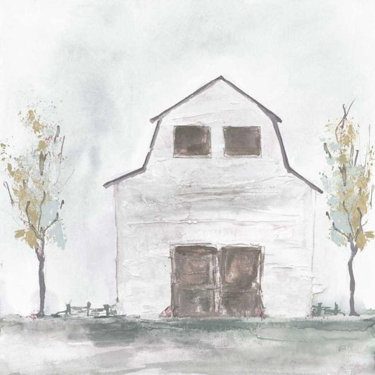 White Barn V Gold Ornate Wood Framed Art Print with Double Matting by Paschke, Chris