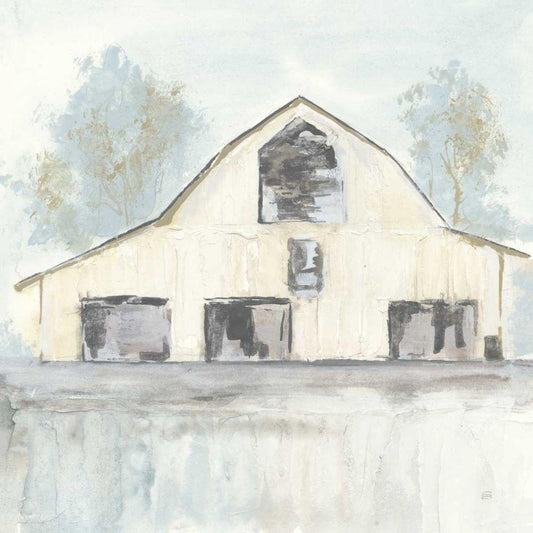 White Barn III Gold Ornate Wood Framed Art Print with Double Matting by Paschke, Chris
