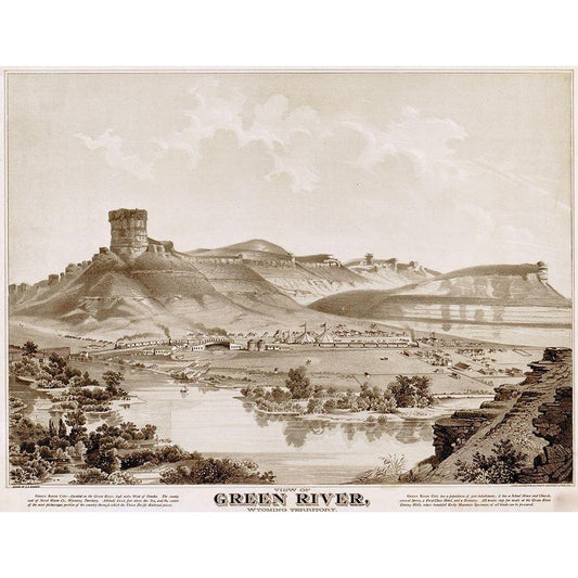 Green River-Wyoming 1875 Gold Ornate Wood Framed Art Print with Double Matting by Vintage Maps