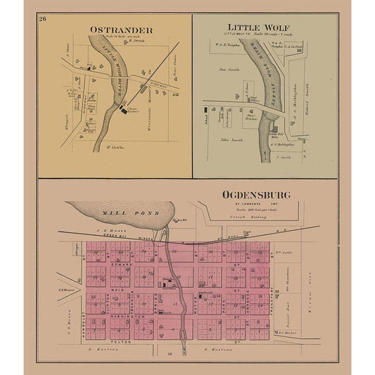Ostrander - Little Wolf - Ogdenburg - Wisconsin Gold Ornate Wood Framed Art Print with Double Matting by Unknown