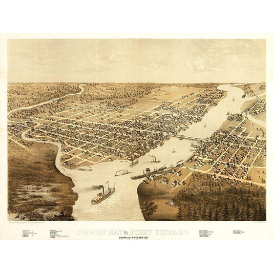 Ft Howard, Green Bay Wisconsin - Snyder 1877 Gold Ornate Wood Framed Art Print with Double Matting by Snyder
