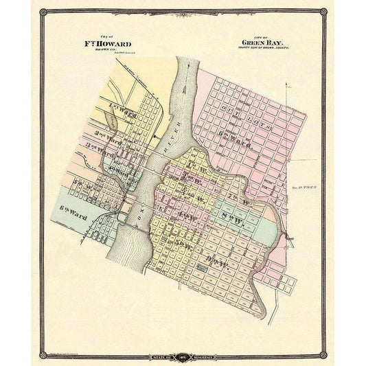 Green Bay Fort Howard Wisconsin - Ruger 1867 Gold Ornate Wood Framed Art Print with Double Matting by Ruger