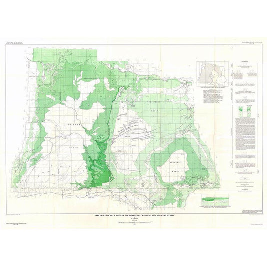 Southwestern Wyoming Adjacent States - Bradley Gold Ornate Wood Framed Art Print with Double Matting by Bradley