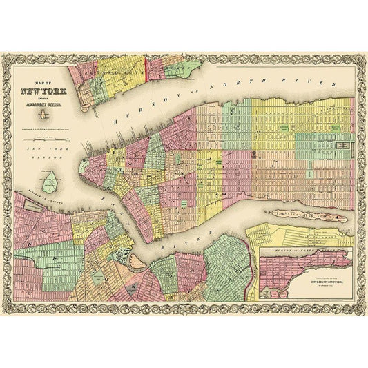New York New York - Colton 1855 Gold Ornate Wood Framed Art Print with Double Matting by Colton