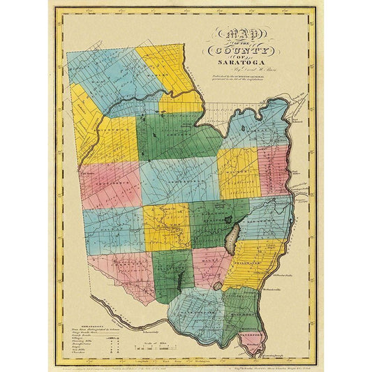 Saratoga New York - Burr 1829 Gold Ornate Wood Framed Art Print with Double Matting by Burr