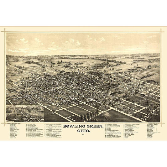 Bowling Green Ohio - Norris 1888 Gold Ornate Wood Framed Art Print with Double Matting by Norris