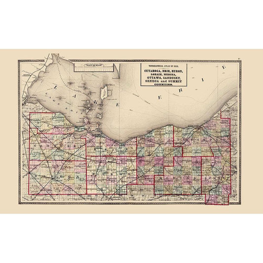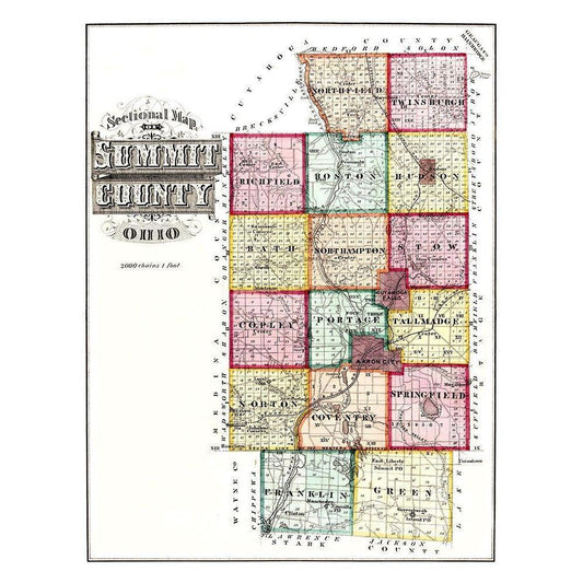 Summit Ohio - 1874 Gold Ornate Wood Framed Art Print with Double Matting by Unknown