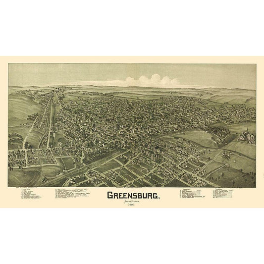 Greensburg Pennsylvania - Fowler 1901 Gold Ornate Wood Framed Art Print with Double Matting by Fowler