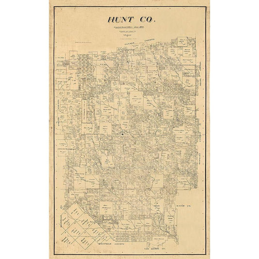 Hunt County Texas - Pressler 1894 Gold Ornate Wood Framed Art Print with Double Matting by Pressler