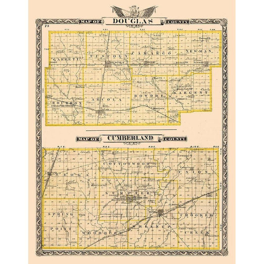 Douglas Cumberland County Wisconsin - Beers 1876 Gold Ornate Wood Framed Art Print with Double Matting by Beers
