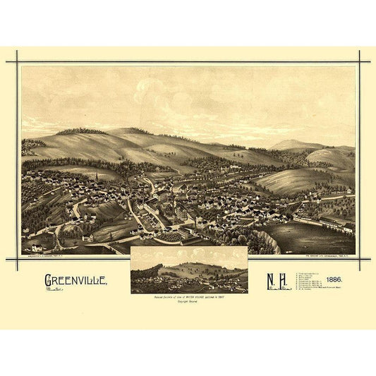 Greenville New Hampshire - Burleigh 1886 Gold Ornate Wood Framed Art Print with Double Matting by Burleigh