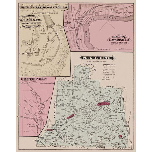 Salem Pennsylvania Landowner - Caldwell 1877 Gold Ornate Wood Framed Art Print with Double Matting by Caldwell
