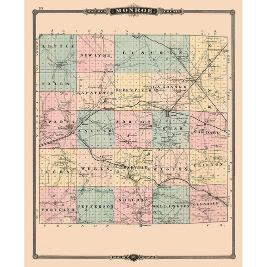 Monroe County Wisconsin - Snyder 1877 Gold Ornate Wood Framed Art Print with Double Matting by Snyder