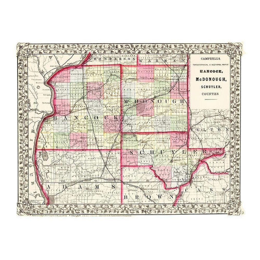 Hancock Mcdonough Schuyler Illinois Gold Ornate Wood Framed Art Print with Double Matting by Campbell