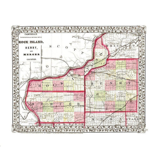 Henry Rock Island Mercer Illinois - Campbell Gold Ornate Wood Framed Art Print with Double Matting by Campbell