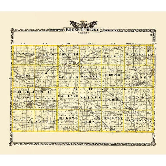 Mchenry Boone Illinois Landowner - Warner 1870 Gold Ornate Wood Framed Art Print with Double Matting by Warner